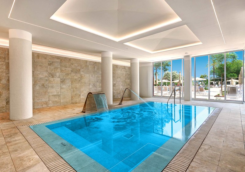 - Erholsame Stunden: Spa mit Hallenbad, Sauna und Eisbrunnen für geradlinte Regeneration.