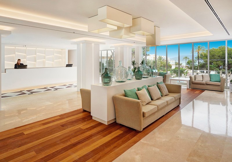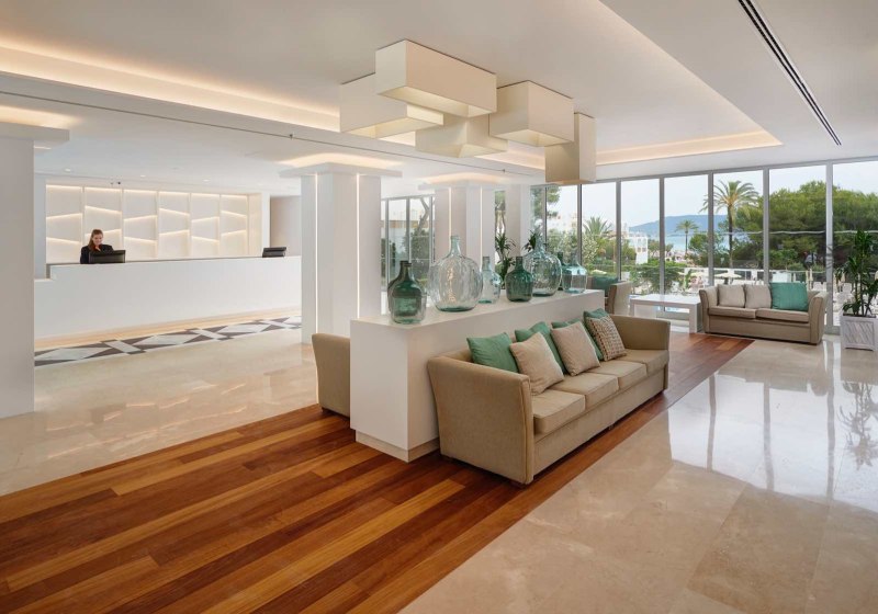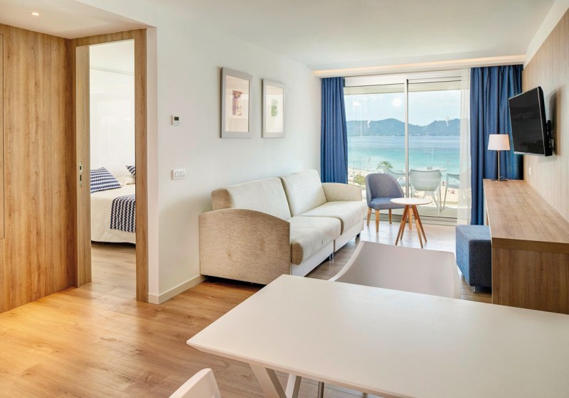 Im Hipotels Bahía Cala Millor wohnt Ihr direkt am langen Sandstrand von Cala Millor, mit freiem Blick auf das Naturschutzgebiet Punta de n'Amer. Das Haus ist Adults-only ab 18 Jahren, ideal für ruhesuchende Paare und Freundeskreise. Helle Bereiche, klare Linien und die Nähe zum Meer prägen das entspannte Ambiente.