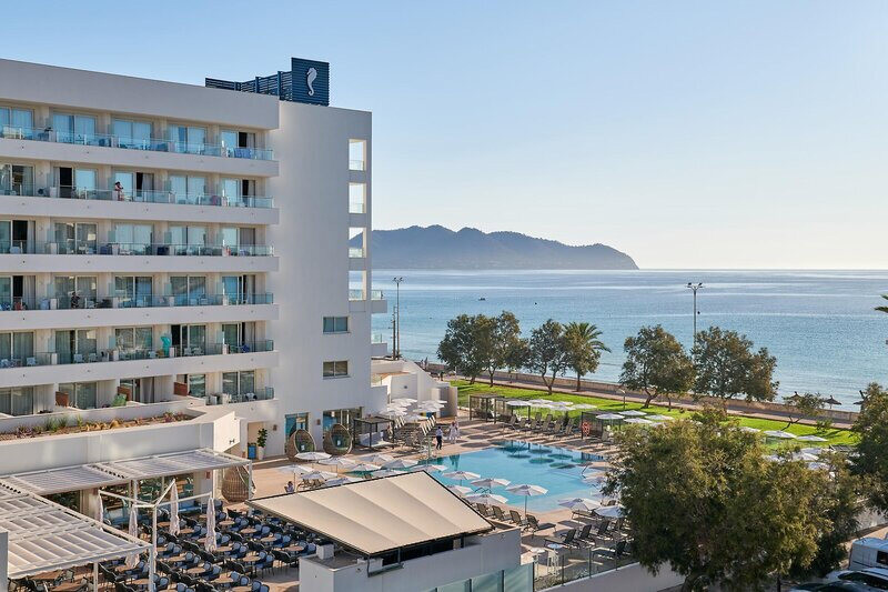 Im frisch renovierten Hipotels Flamenco wohnt Ihr direkt an der Strandpromenade von Cala Millor. Das Haus wirkt aufgeräumt, modern und klar strukturiert – ideal, wenn Ihr Strandnähe, komfortable Zimmer und unkomplizierte Wege schätzt. Familien fühlen sich durch Kinderpool und Miniclub gut aufgehoben, Paare freuen sich über ruhige Stunden am Außenpool oder auf der Terrasse mit Meerbrise. Die Gemeinschaftsbereiche sind übersichtlich angelegt, vom Lobbybereich mit Bar bis zur Sonnenterrasse am Pool.