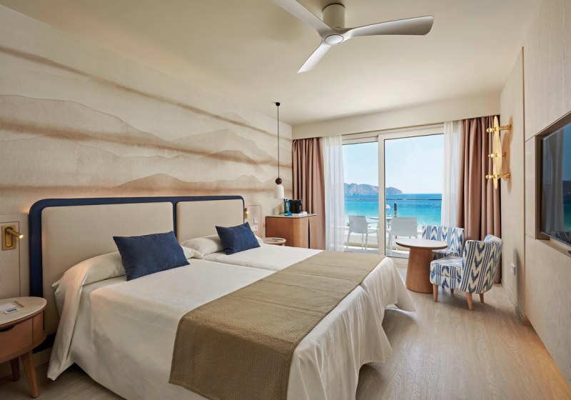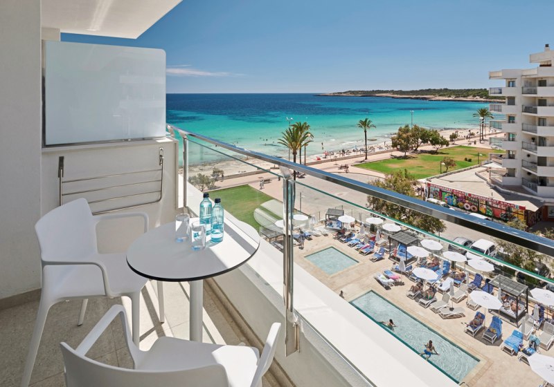 Der Strand liegt nur durch die Promenade getrennt vor Euch, das Zentrum erreicht Ihr in wenigen Gehminuten. Wer Natur mag, spaziert zur nahegelegenen Punta N’Amer. Kulinarisch wählt Ihr zwischen Restaurant mit Terrasse und mehreren Bars. Abends untermalt Livemusik den Tag, gelegentlich stehen Folklore oder Shows auf dem Programm. Das Spa mit Innenpool ergänzt den Fitnessraum – eine stimmige Mischung aus Baden, Entspannen und Aktivsein. Highlight: Komplett renoviertes Strandhotel mit klarer Linie und kurzen Wegen.