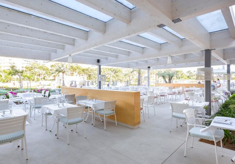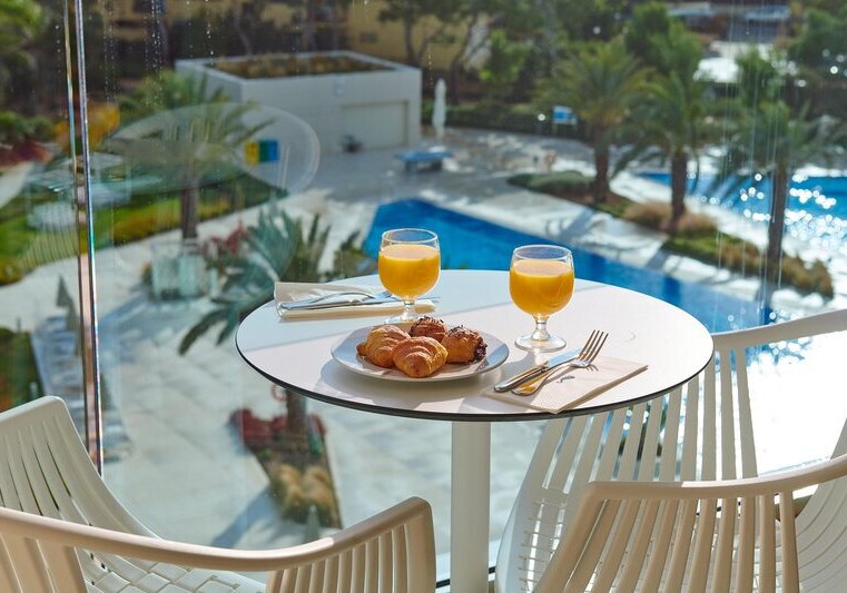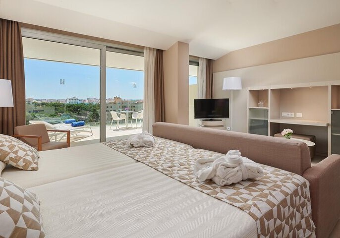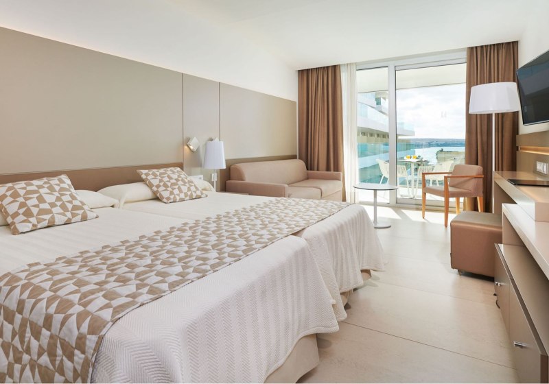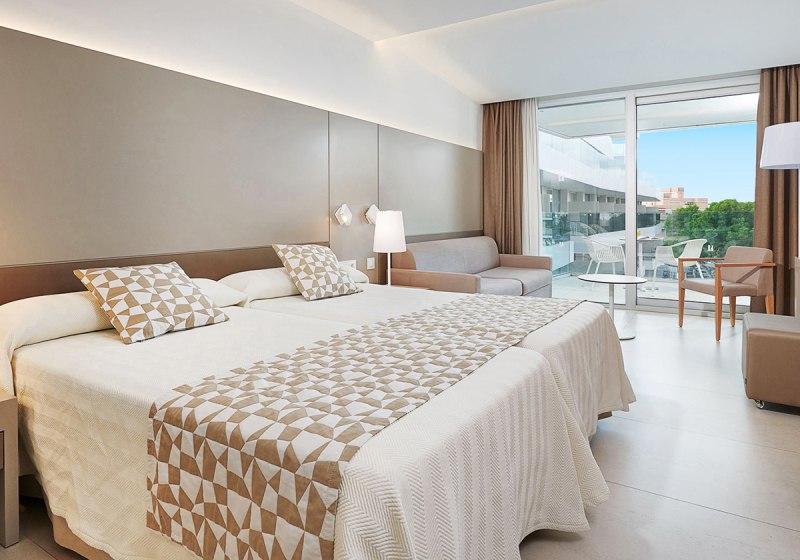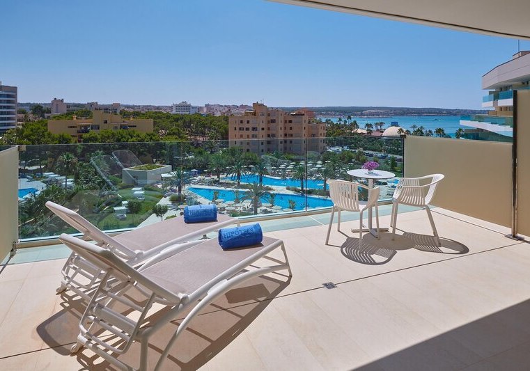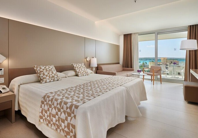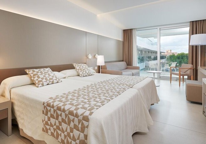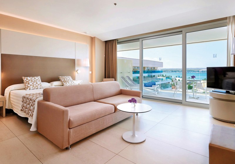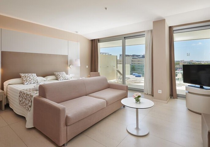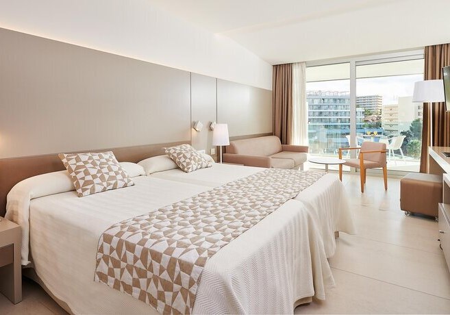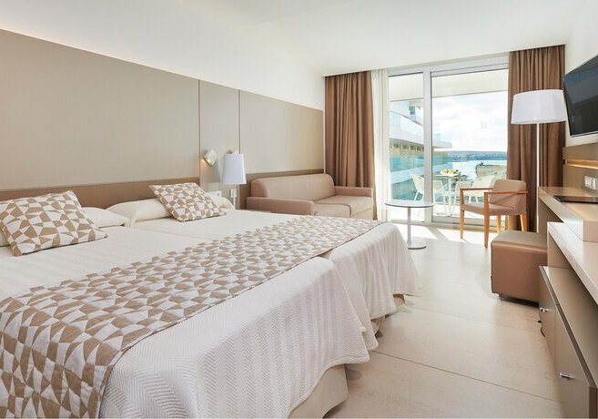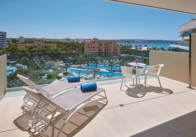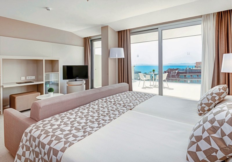 Ihr startet den Tag mit einem kurzen Spaziergang zum Sandstrand an der Playa de Palma zwischen Balineario 5 und 6. Zurück im Hotel erwarten Euch Buffetvielfalt, eine Pool-/Snack-Bar mit Terrasse und abends Livemusik. Kostenfreies WLAN trägt durchweg, während optional buchbare Balibetten zusätzliche Privatsphäre am Pool schaffen.