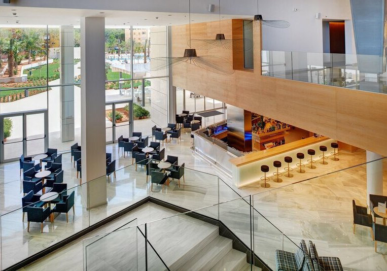 Im Hipotels Gran Playa de Palma wohnt Ihr in einem Haus, das 2017 eröffnet wurde und mit klarer Linie, weiten Sonnenterrassen und zwei Außenpools sofort ankommt. Die Stimmung ist lebhaft, aber geordnet: Familien, Paare, Strandfans und Geschäftsreisende finden dank Animation, Spa und Konferenzräumen jeweils ihren passenden Rhythmus in den Ferien.