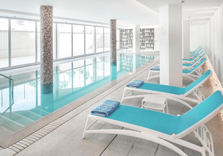 Der Ruhebereich ist kompakt und klar: Ein Hallenbad (ca. 32 m²) ergänzt die Außenpools und bietet wetterunabhängige Bahnen sowie entspannte Pausen am Wasser. Damit bleibt Ihr flexibel, ob Ihr morgens aktiv startet oder am späten Nachmittag zur Erholung eintaucht. Die Atmosphäre ist reduziert, gezielt und ohne Inszenierung, passend zum funktionalen Stil der Anlage. Highlight: Hallenbad als verlässliche Alternative zu Wind und Wellen.