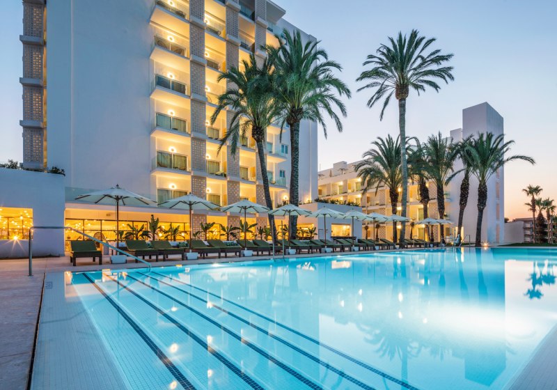 Im HM Ayron Park - Adults Only wohnt Ihr in einem Adults-Only-Haus ab 18 Jahren, das seine Stärke in klaren Strukturen und einer durchdachten Infrastruktur zeigt. Sonnenstunden verbringt Ihr an drei Außenpools, auf der Dachterrasse mit zwei weiteren Pools oder entspannt in Loungebereichen. Die Sky Bar setzt dem Haus eine markante Krone auf und rahmt den Blick über Playa de Palma.