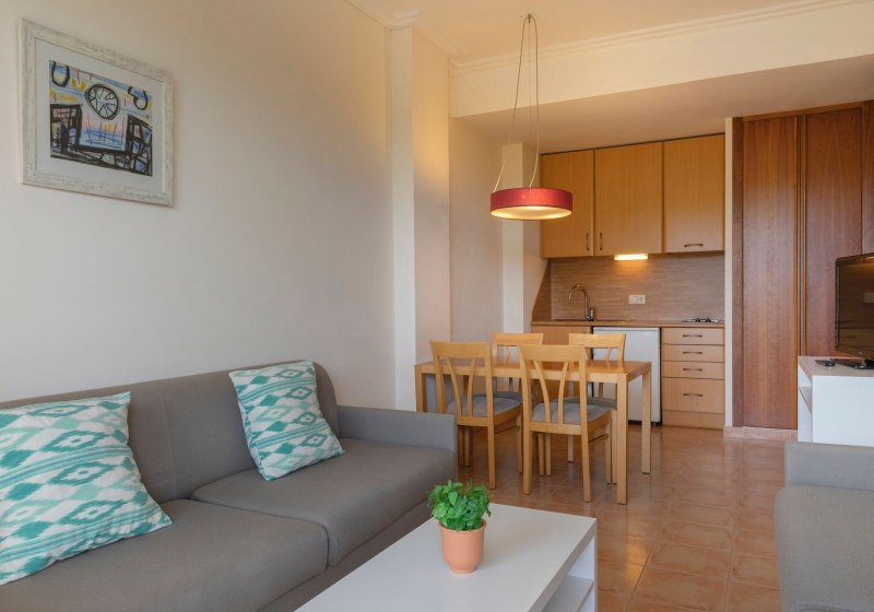 Die Studios und Appartements mit Kitchenette geben Euch Freiheit bei der Tagesplanung, das Buffetrestaurant und die Bars liefern bequeme Alternativen. Das Team ist rund um die Uhr an der Rezeption präsent, WLAN ist inklusive. Draußen liegen Pool, Garten und Terrassenflächen nah beieinander, Wege bleiben kurz. Wer Abwechslung sucht, nutzt Animation, Fitnessraum oder schaltet im Hallenbad ab – ganz nach Eurer Taktung in den Ferien. Highlight: Klare Struktur, vielseitig nutzbar – erholsam für Familien und Paare.