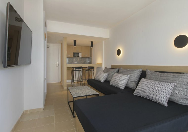 Ihr residiert in Apartments mit ca. 36 m². Viele Einheiten verfügen über Balkon oder Terrasse – ideal, um den Tag luftig zu beginnen. Zentral gesteuerte Klimaanlage, gefliester Boden und ein Badezimmer mit Dusche stehen für klare Funktion. Ein Flatscreen-Sat-TV und kostenloses WLAN liefern Information und Unterhaltung.