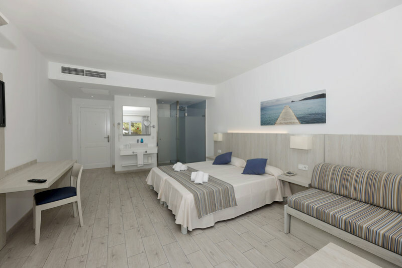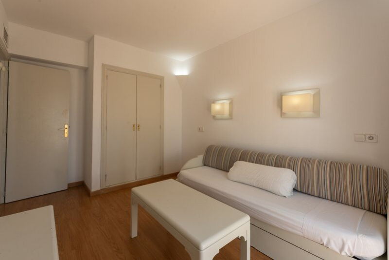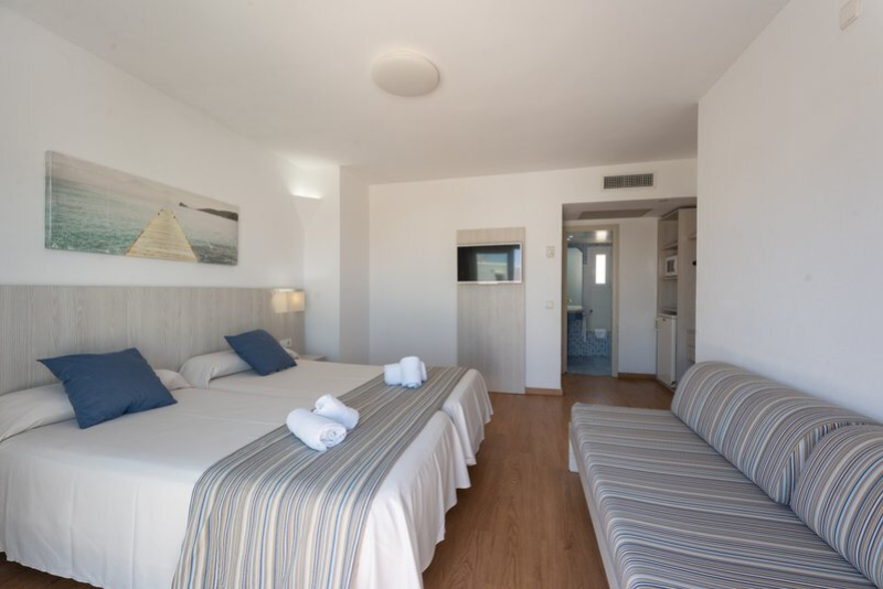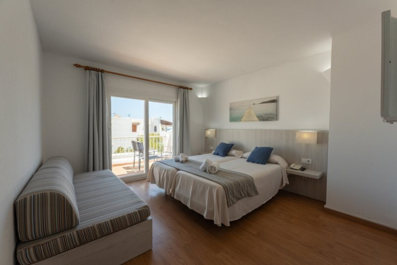 Die Zimmer im Hotel Club Es Talaial sind komfortabel ausgestattet und bieten zahlreiche Annehmlichkeiten wie Klimaanlage, Balkon, Badezimmer mit Badewanne, getrennte Schlafzimmer, Kinderbett, Kochnische mit Kühlschrank und Mikrowelle, Sitzecke, Telefon, Safe, Schlafsofa, Kaffee- und Teezubehör, Fernseher und WiFi.