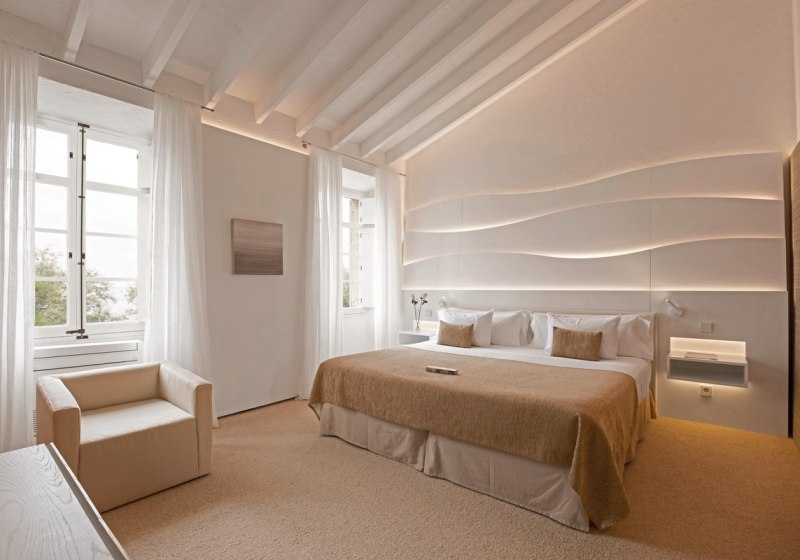 26 Zimmer und Suiten verteilen sich auf drei Gebäude. Alle bieten Bad, Föhn, LCD-Sat-TV, Telefon, Safe, Minibar, Klimaanlage, Heizung, Kaffeemaschine und kostenfreies WLAN. Doppelzimmer messen etwa 25 Quadratmeter und zeigen zum Meer oder in die Berge.