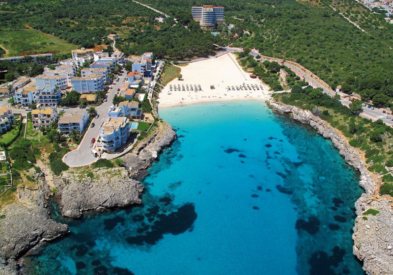 Ihr wohnt in Porto Colom an der Cala Marsal, rund 200 Meter von einer Sandbucht entfernt. Das gibt Eurem Tag Struktur: am Morgen kurz zum Strand, mittags zurück ins Hotel, abends wieder ans Wasser. Zum Stadtzentrum mit Hafenflair sind es etwa 2 Kilometer – ideal für einen kleinen Bummel.