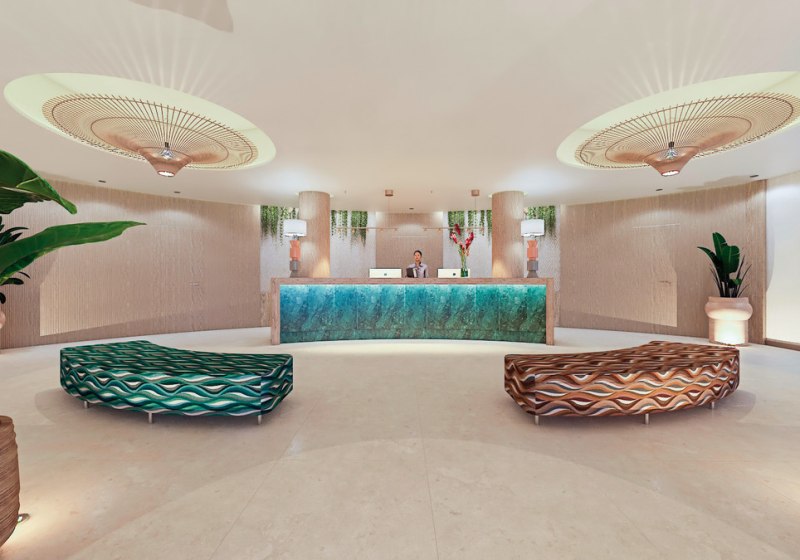 Die Infrastruktur ist durchdacht: Lobby mit 24-h-Rezeption, drei Lifte, Aufenthaltsraum mit Sat-TV und flächendeckendes, kostenfreies WLAN. Draußen verteilen sich Poollandschaft, Liegewiese, Sitzterrasse sowie Liegen und Schirme – viel Raum für ruhige Phasen zwischen Strand und Aktivität.