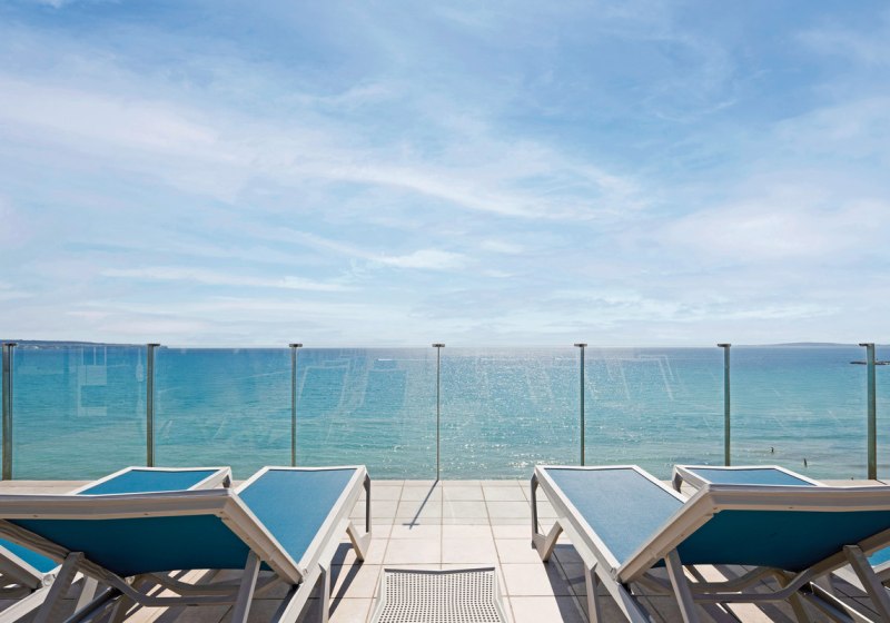 Im Hotel Eden Palma Playa wohnt Ihr in einem Erwachsenenhotel ab 18 Jahren – direkt am Übergang von Can Pastilla zur Playa de Palma, nur durch die Uferpromenade vom Strand getrennt. Die Atmosphäre ist fokussiert, klar und angenehm entspannt. Das Haus ist überschaubar mit 94 Zimmern auf vier Etagen, wodurch sich der Aufenthalt persönlich anfühlt und Ihr schnell Euren Rhythmus findet. Auf der Dachterrasse mit Sonnenliegen und Whirlpool spürt Ihr das Meer ganz nah.