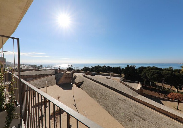 - Dachterrasse: Blick über Palma und das Meer – klar und weit.