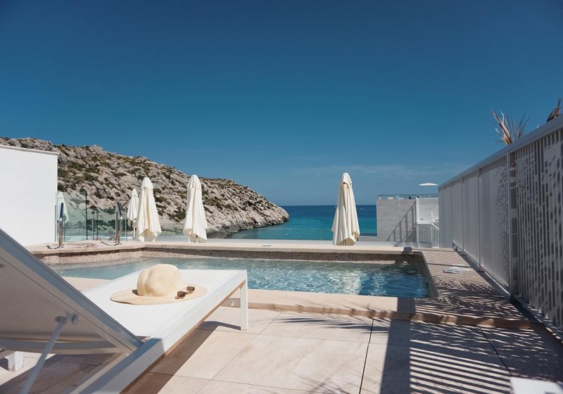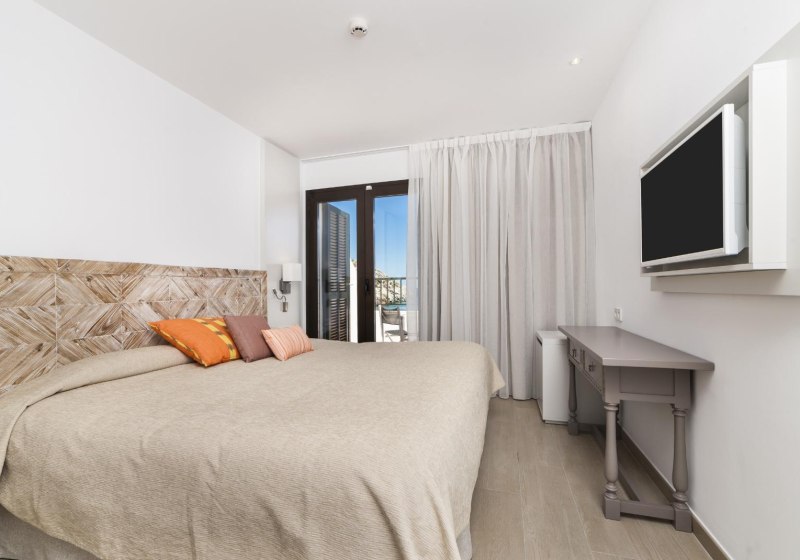 Im Hotel Hoposa Niu wohnt Ihr in einem Boutique-Haus mit nur 24 Zimmern, direkt am Sandstrand und zugleich nah am Ortszentrum. Das 2015 renovierte Hotel verteilt sich auf zwei niedrige Gebäude mit zwei Etagen und vermittelt eine intime, entspannte Atmosphäre. Ihr bewegt Euch zwischen Lobby, Terrasse und Garten kurze Wege, habt WLAN, eine 24‑Stunden‑Rezeption und mehrsprachiges Team an Eurer Seite. Der Außenpool mit Sonnenterrasse und Liegen ergänzt den Strand vor der Tür.