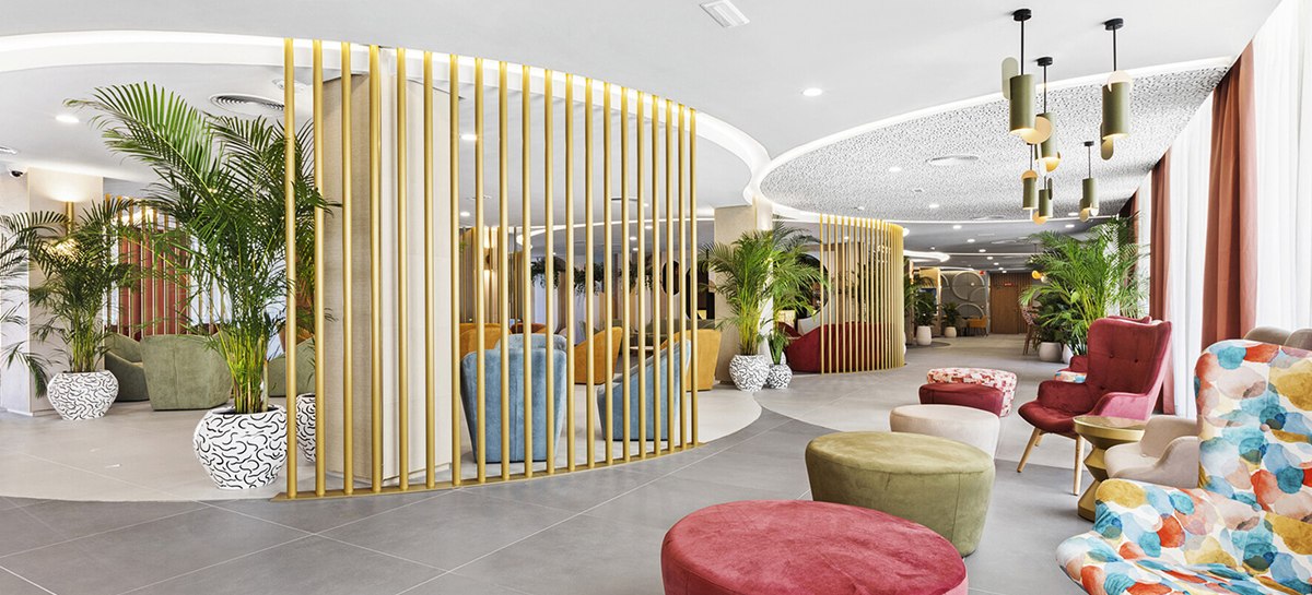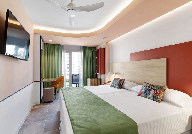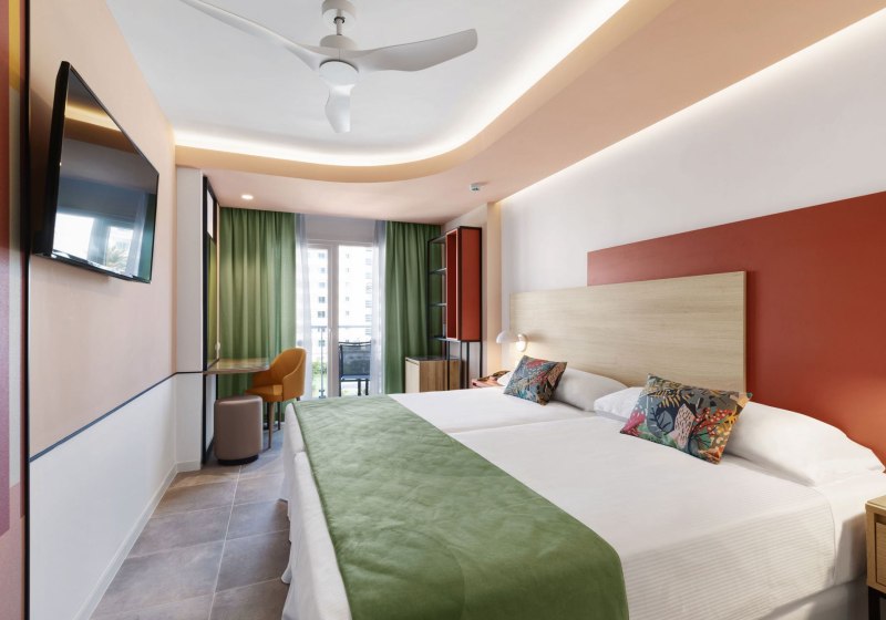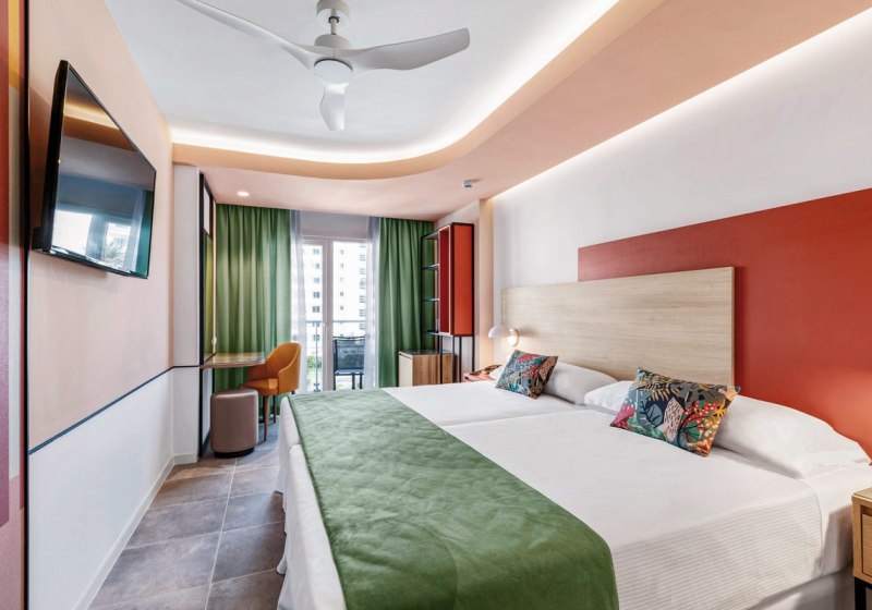 Im Hotel Riu Concordia wohnt Ihr in einem Haus mit 272 Zimmern auf fünf Etagen, zwei Straßen vom lebhaften Unterhaltungszentrum der Playa de Palma entfernt. Die Atmosphäre ist klar strukturiert: kurze Wege, eine Lobby mit Rezeption und verlässliche Infrastruktur. WLAN nutzt Ihr im gesamten Hotel. Draußen erwarten Euch Sonnenterrasse, Sonnenliegen, Sonnenschirme und eine Liegewiese – ideal, wenn Ihr zwischen Strandgängen einen ruhigen Platz sucht.