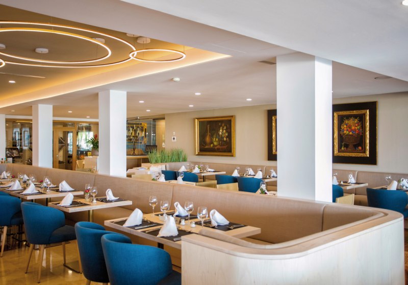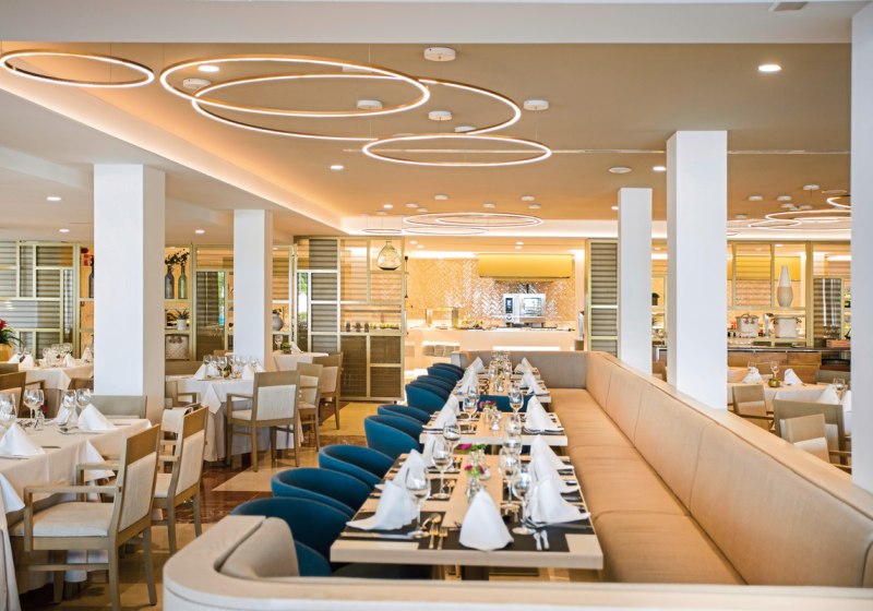 Zwei Restaurants bilden die kulinarische Basis, vier Bars setzen Akzente zwischen Pool, Strand und Lobby. Vom Frühstück bis zum Abendessen genießt Ihr ein breites Spektrum, ergänzt durch Live-Kochen und Snacks. Alkoholische und alkoholfreie Getränke sind selbstverständlich Teil des Angebots. Highlight: Breites Kulinarikfenster vom frühen Morgen bis in den Abend.