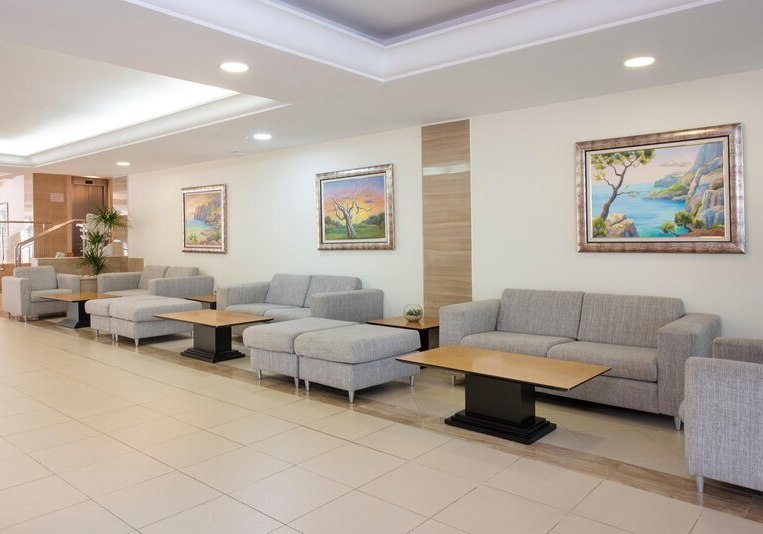 Die öffentlichen Bereiche sind funktional organisiert: ein Außenpool mit separatem Kinderbecken, ausreichend Liegestühle und Sonnenschirme, dazu Badetücher. WLAN ist kostenlos, die Rezeption arbeitet rund um die Uhr. Zwei Lifte erschließen die 9 Etagen, Gepäckaufbewahrung und Tour‑Desk erleichtern An- und Abreise sowie Ausflugsplanung.