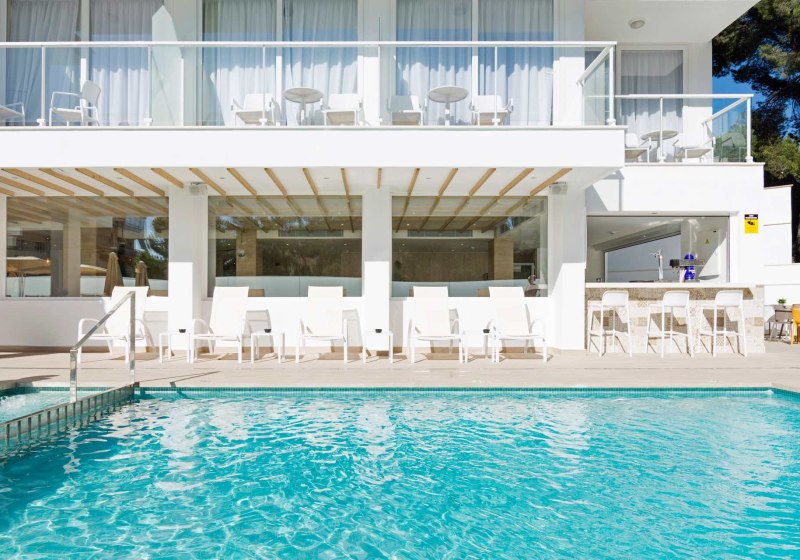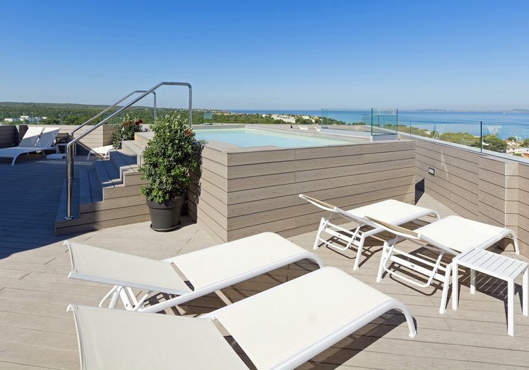 Im HSM Son Veri wohnt Ihr in einem Adults-only-Haus ab 16 Jahren, das klare Linien mit entspannter Leichtigkeit verbindet. Das Herzstück ist die Dachterrasse mit Pool und Skybar, wo Ihr über der Bucht von Palma den Blick schweifen lasst. Unten lockt der Außenpool mit Sonnenterrasse, Liegen und Schirmen, oben das Chillout-Sonnendeck für ruhige Stunden.