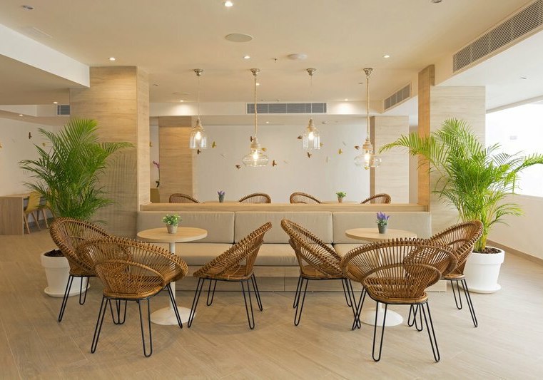 Zwei Treffpunkte für Drinks setzen Akzente: die Bar im Haus und die Skybar auf der Dachterrasse. Wer planbar speisen möchte, bucht eure perfekten Ferien mit Halbpension; wer offen bleibt, nutzt die Nähe zu den Lokalen in Arenal.