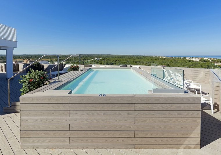 - Zwei Poolzonen: Außenpool und Dachpool mit großzügigem Sonnendeck.