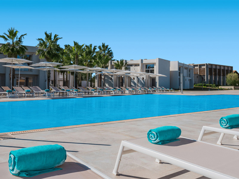 Im Außenbereich verteilen sich drei Pools und großzügige Liegeflächen. Eine Poolbar, schattige Bereiche und Handtuchservice erleichtern Euren Tagesrhythmus zwischen Schwimmen, Lesen und kurzen Erfrischungspausen. Der Gesamtstil wirkt funktional-modern, mit klaren Wegen zu Strand, Sportbereichen und Restaurants. Highlight: Drei Außenpools plus zwei Sonnenterrassen ergeben viele ruhige Liegeplätze.