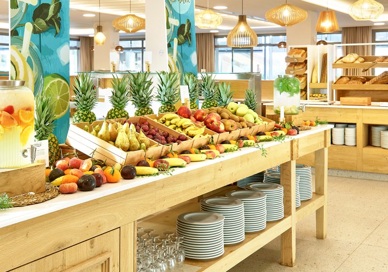 - Terrassenplätze: Zwei Restaurants mit Terrasse bieten luftige Plätze zu allen Mahlzeiten.