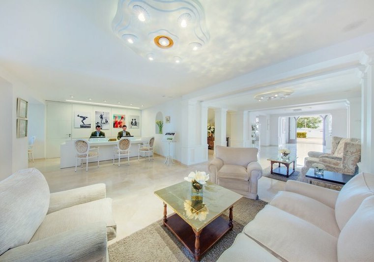 Die Lage spielt ihre Stärke aus: direkt am Meer, ruhig, mit öffentlichem Sandstrand vor der Tür und einer Fußgängerpromenade als sanfter Grenze. Bis zum Stadtzentrum sind es etwa 2 km – nah genug für Abwechslung, weit genug für entspannte Tage. Der Golfplatz liegt in rund 10 km Entfernung.