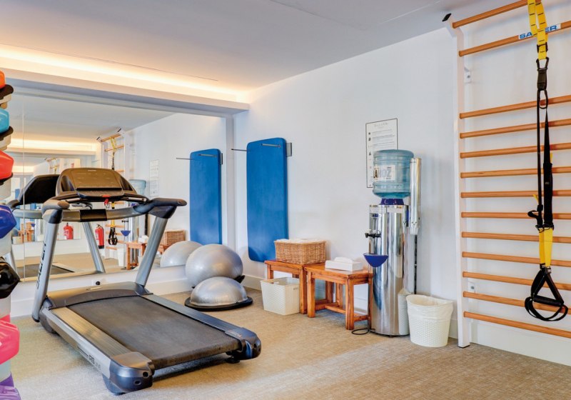 Zwei saisonale Außenpools – einer davon Adults only – flankieren die Sonnenterrasse mit balinesischen Betten. Liegen, Sonnenschirme und Badetücher sind am Poolbereich bereit. Fitnessraum, Tennis-Hartplatz und Fahrradraum strukturieren den aktiven Teil. Nachhaltigkeitsmaßnahmen wie Recycling, energiesparende Beleuchtung, Bewegungsmelder und Wassereinsparung sind fest verankert.