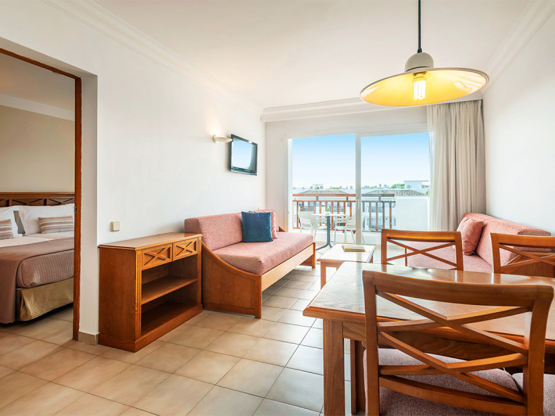 Im Inturotel Cala Azul wohnt Ihr in einem Apartmenthotel, das Euch mit entspanntem Rhythmus und klarer Struktur empfängt. Zwischen gepflegten Außenbereichen, einem großen Außenpool und familienfreundlichem Kinderbecken findet Ihr schnell Euren Platz. Die Studios und Appartements geben Euch Raum für eigene Routinen dank Kitchenette – ideal für alle, die Flexibilität in den Ferien schätzen. WLAN steht im gesamten Haus kostenfrei bereit, sodass Planung und Austausch mühelos laufen.