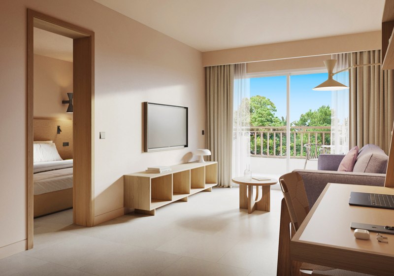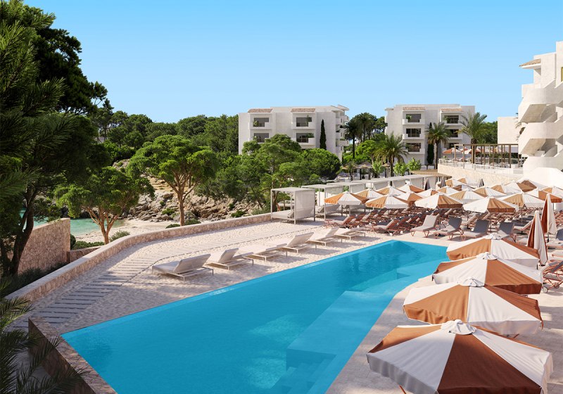 Inturotel Esmeralda Park liegt direkt an der Cala Esmeralda und verbindet Strandnähe mit dem Komfort eines Aparthotels. Ihr wohnt in Studios oder Appartements und nutzt die Freiheit einer Kitchenette, ohne auf Hotelservice zu verzichten. Die Wege führen Euch von der Lobby über Gärten zu Pools, Terrassen und dem feinsandigen Strand.