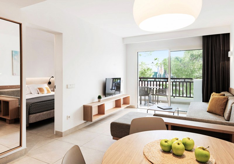 Die Wohnflächen liegen je nach Kategorie bei etwa 33 bis 47 Quadratmetern, einige Appartements der Select-Kategorie bieten zwei Sat-TVs. Meerblick ist zubuchbar. So kombiniert Ihr Privatsphäre, Platz und die Option zur Selbstversorgung mit dem Serviceprofil eines Hotels – ideal für Paare, Freunde und Familien.