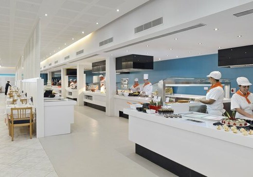 Im klimatisierten Restaurant mit Terrasse wählt Ihr am Buffet, begleitet von Show-Cooking. Für Kinder steht ein eigenes Buffet bereit, Hochstühle sind vorhanden. Tagsüber versorgt Euch die Pool-/Snackbar, abends rundet die Bar den Tag geschmacklich ab.