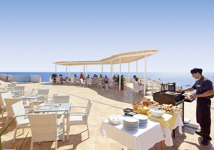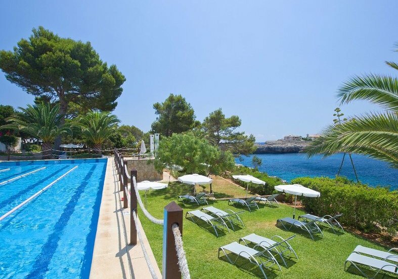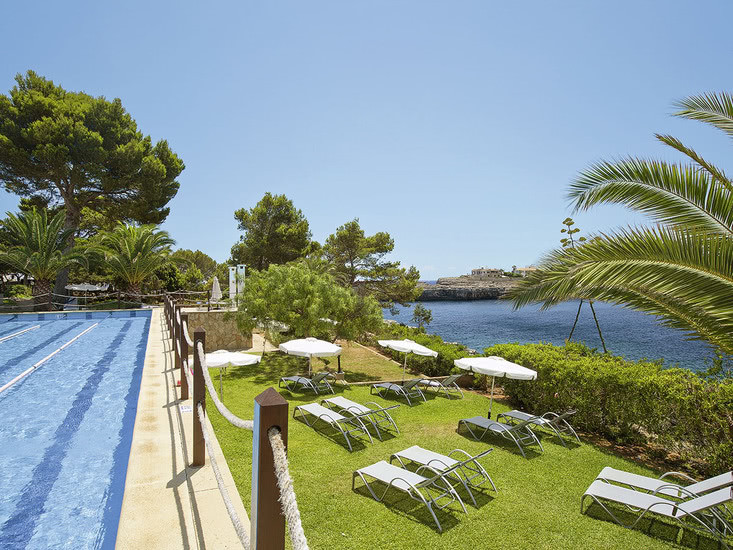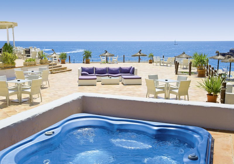 JS Cape Colom verbindet Meereslage auf der Klippe, erwachsene Atmosphäre und klare Angebote: zwei Außenpools, ein beheizbarer Semi‑Olympiapool, Wellness mit Sauna und Dampfbad sowie flexible Verpflegung von Frühstück bis All Inclusive.