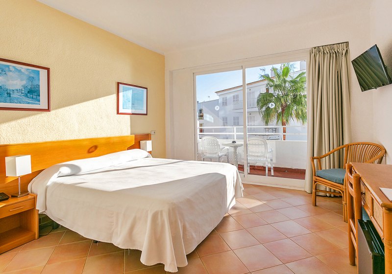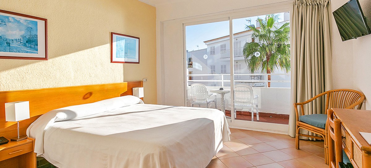Die 119 Zimmer wirken klar und funktional. Doppelzimmer messen etwa 23 Quadratmeter, Einzelzimmer sind mit Einzelbett ausgestattet. Alle verfügen über Bad mit WC, Föhn und Pflegeartikeln, dazu Klimaanlage, TV, Telefon, WLAN und Minikühlschrank – mit Balkon oder Terrasse für frische Luft.