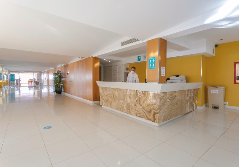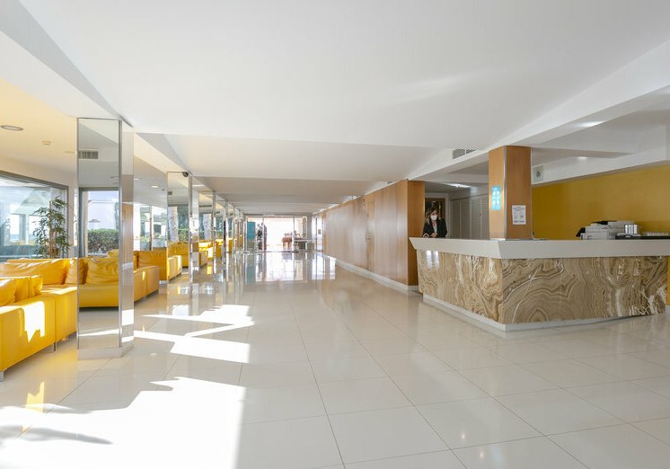 Die Gemeinschaftsbereiche sind übersichtlich strukturiert: zwei Außenpools, großzügige Sonnenterrassen mit Liegen und Schirmen, Sitzterrassen und Außenmöbel. WLAN ist im gesamten Hotel kostenlos, die Rezeption arbeitet rund um die Uhr. Ein Concierge- und Tour‑Desk unterstützt bei Tagesplänen.