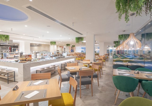 Im Restaurant mit Terrasse esst Ihr flexibel – drinnen oder unter freiem Himmel. Live-Kochen sorgt für frische Zubereitung am Buffet, dazu kommen spezielle Angebote und Diätgerichte. Wer zwischendurch Lust auf etwas Leichtes hat, greift zu Snacks und entspannten Optionen für den kleinen Hunger.