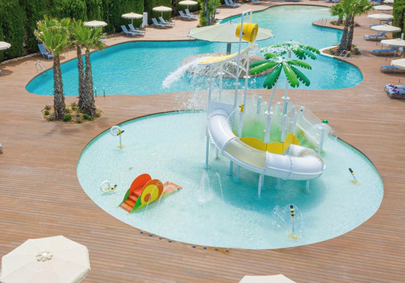• Liegestühle • Außenpool • Sonnenschirme • Poolbar • Sonnenterrasse • Badetücher • Wasserrutsche • Pool