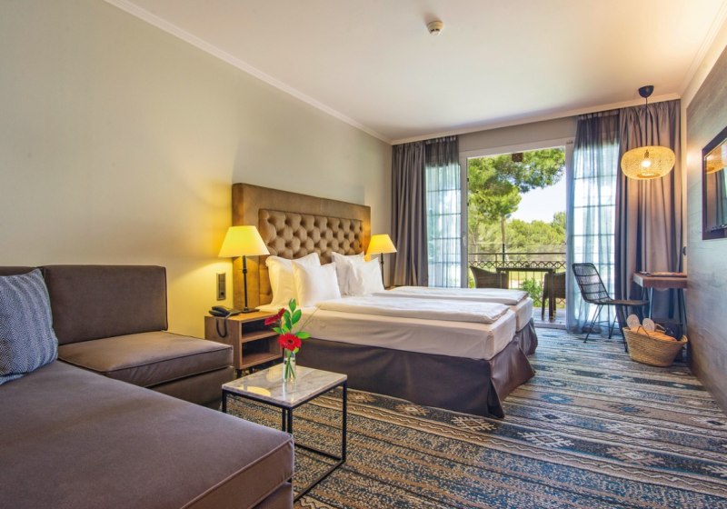 Eure Zimmer verbinden Funktion und Komfort mit Details für entspannte Tage. WLAN, TV und Safe gehören ebenso dazu wie Minibar und eine Kaffee- beziehungsweise Teezubereitung. Klimaanlage, Schreibtisch und ein Sofabett geben Flexibilität. Balkon oder Terrasse – teilweise möbliert – öffnen den Blick ins Grüne. Highlight: Balkon oder Terrasse erweitern den Raum ins Freie.