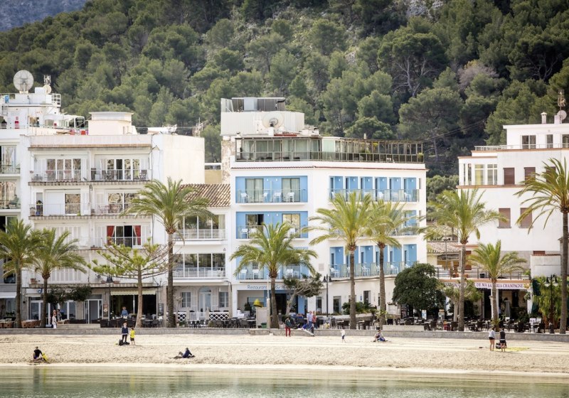 Im Los Geranios wohnt Ihr in einem überschaubaren 4-Sterne-Haus direkt an der Strandpromenade von Puerto de Sóller. 2023 renoviert, bietet es 26 Wohneinheiten in einem vierstöckigen Gebäude – mit klarer Linienführung, mediterraner Helligkeit und kurzen Wegen zwischen Lobby, Terrasse und Meer.