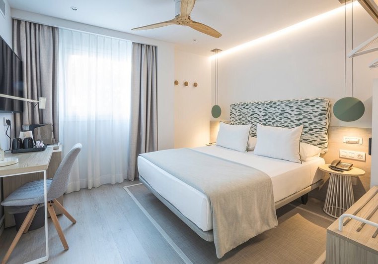 Die 98 Zimmer sind klar ausgestattet: Klimaanlage, TV, Safe, Minibar sowie Bad oder Dusche mit Föhn. Je nach Kategorie wohnt Ihr mit Balkon oder Terrasse; Einzelzimmer sind auch ohne Balkon verfügbar. Für den Blick wählt Ihr seitlichen Meerblick oder direktes Meerpanorama.