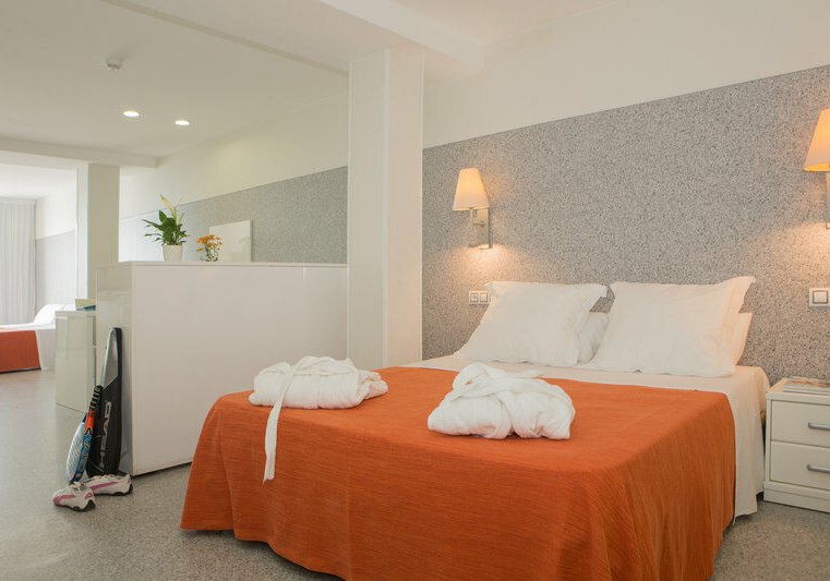 Ihr wohnt in Studios mit etwa 30 Quadratmetern. Twinbett oder Doppelbett bilden die Basis, ein Zustellbett ist möglich, ein Babybett ist kostenlos. Der geflieste Boden und die zentral gesteuerte Klimaanlage schaffen ein angenehmes Raumklima. Die Kitchenette hält Euch unabhängig, der Flatscreen‑Sat‑TV begleitet die Auszeiten.