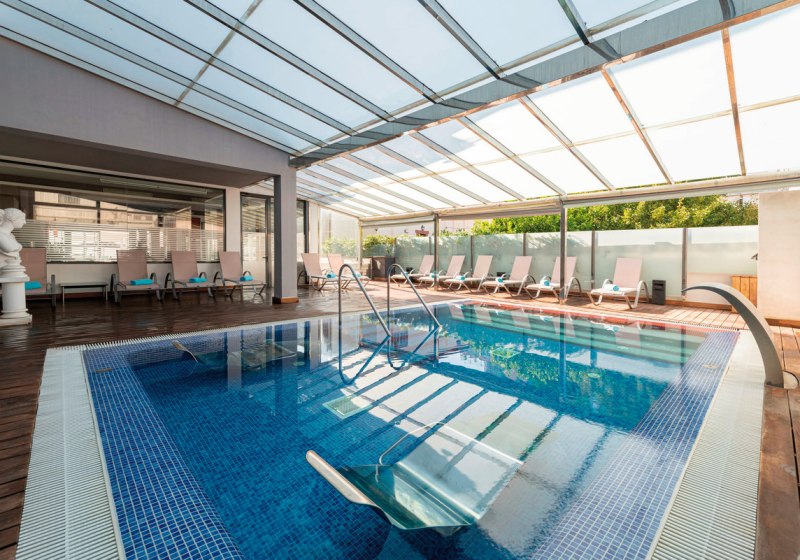 • Liegestühle • Hallenbad • Außenpool • Sonnenschirme (kostenfrei) • Poolbar • Sonnenterrasse • Badetücher (gegen Kaution, kostenfrei) • Dachterrasse • Pool