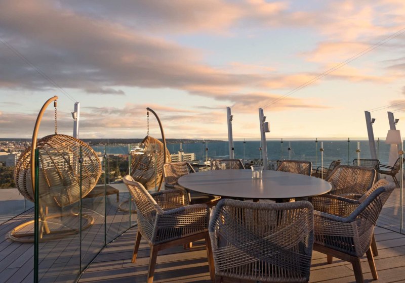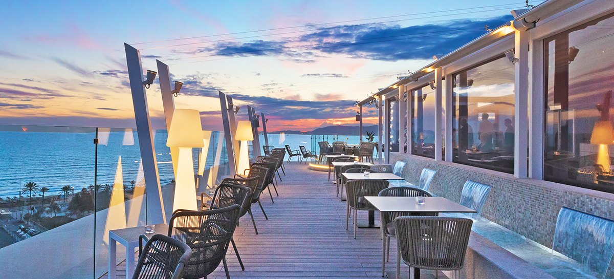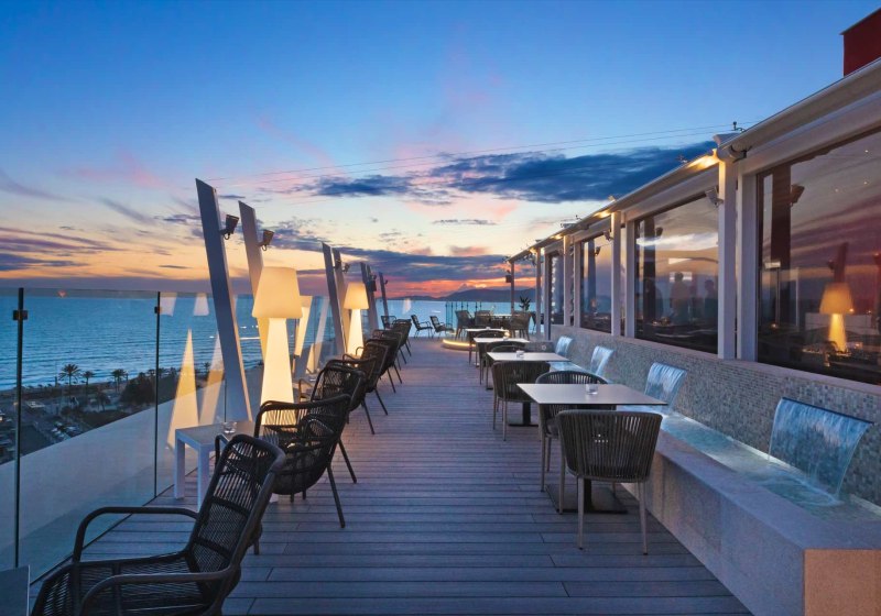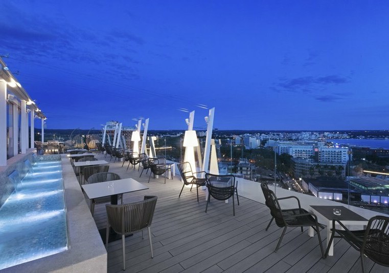 - Sky-Terrasse: Dachterrasse im 13. Stock liefert großzügige Blicke über Palma.