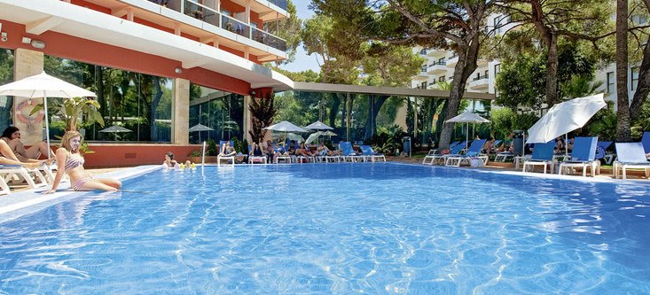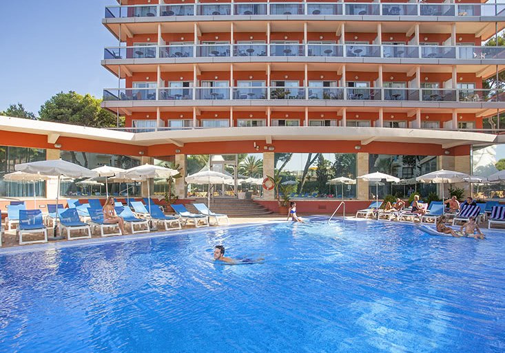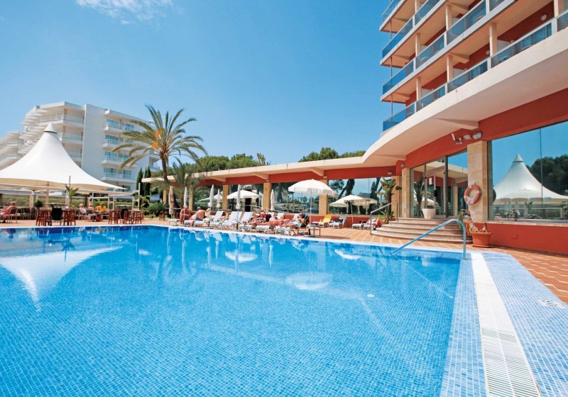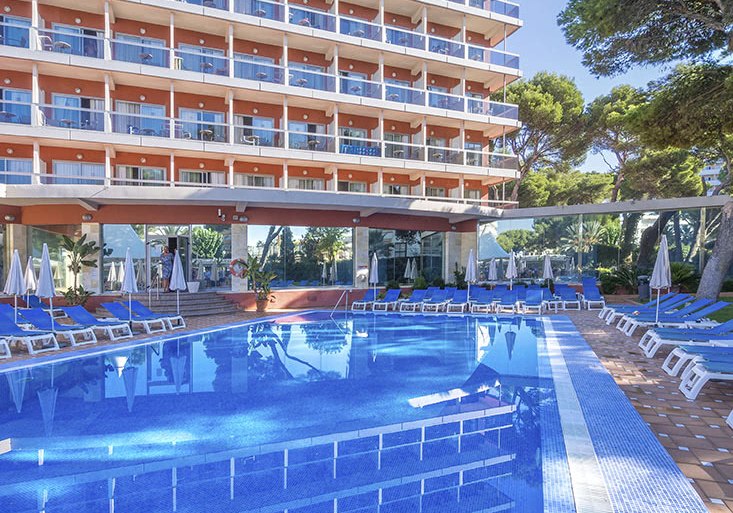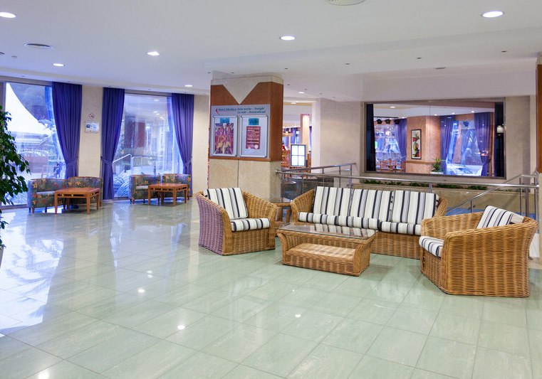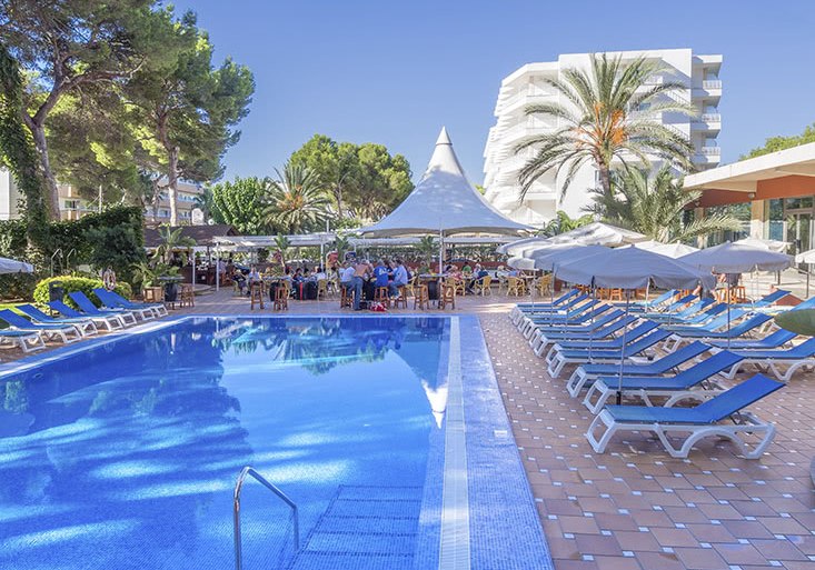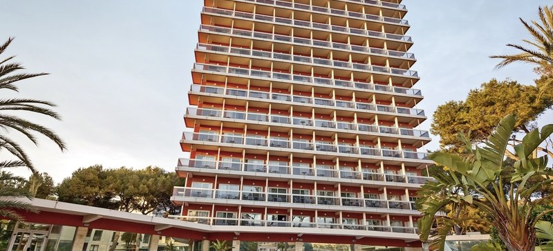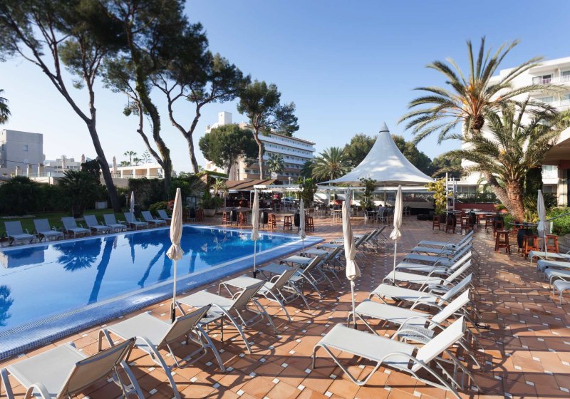 Willkommen im Obelisco, wo Ihr in entspannter Strandnähe ankommt und Euch in einem klar strukturierten Haus mit 180 Zimmern auf 12 Etagen orientiert. Die offene Lobby mit Rezeption führt Euch zu Terrassen, Liegewiese und Außenpool; oben eröffnet die Dachterrasse im 13. Stock den Blick über die Bucht von Palma. Das Ambiente wirkt lebendig, ohne laut zu sein, mit stimmigen Treffpunkten vom TV-Barbereich bis zur Skyline-Etage.