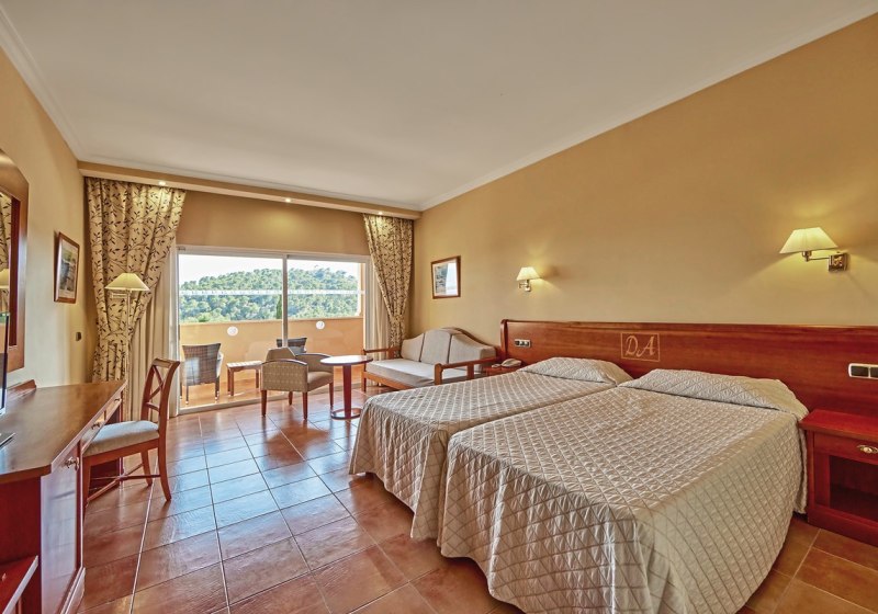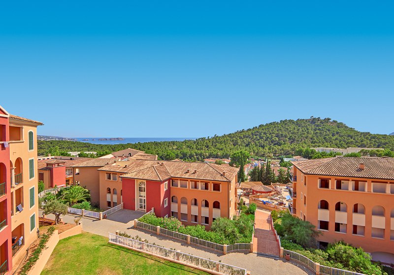 Am Ortsrand von Paguera gelegen, profitiert Ihr von einer ruhigen Hanglage und der Nähe zu Zielen am Meer. Etwa ein Kilometer trennt Euch vom Zentrum und dem flach abfallenden Sandstrand; ein Hotel‑Shuttle bringt Euch bequem hinunter. Öffentlicher Nahverkehr liegt rund 500 Meter entfernt, Golfrunden sind in der Umgebung möglich.