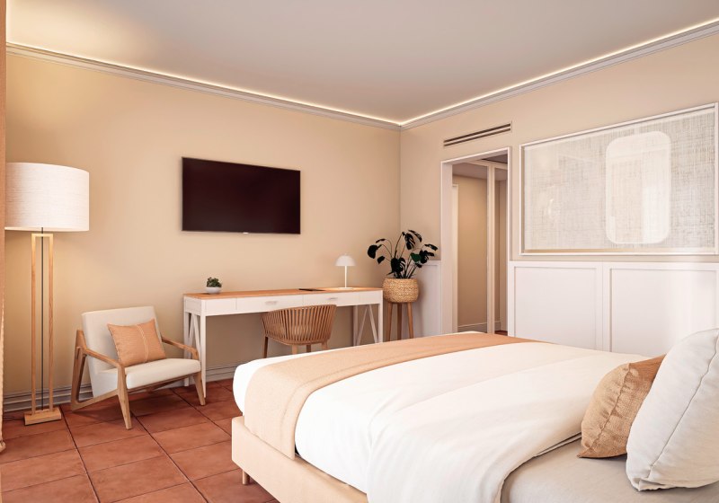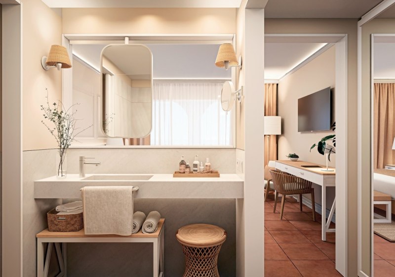Die Aufteilung bleibt übersichtlich, mit klaren Linien und wenigen Ablenkungen. So entsteht ein Raum, der Euch nach Strand, Pool oder Ausflug schnell ankommen lässt. Wer mit Kindern reist, profitiert von strukturierten Schlafplätzen. Babybetten stehen kostenfrei bereit.