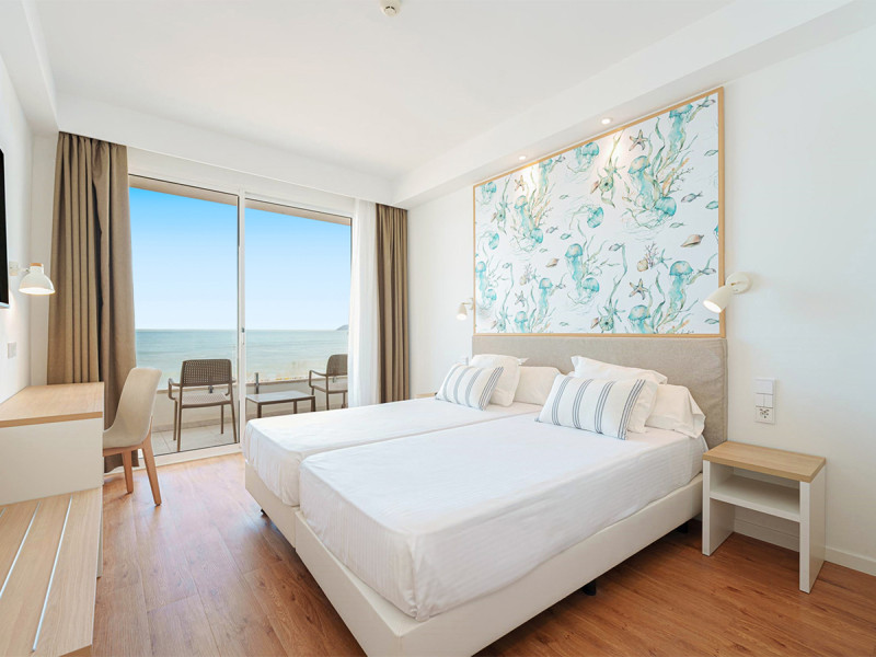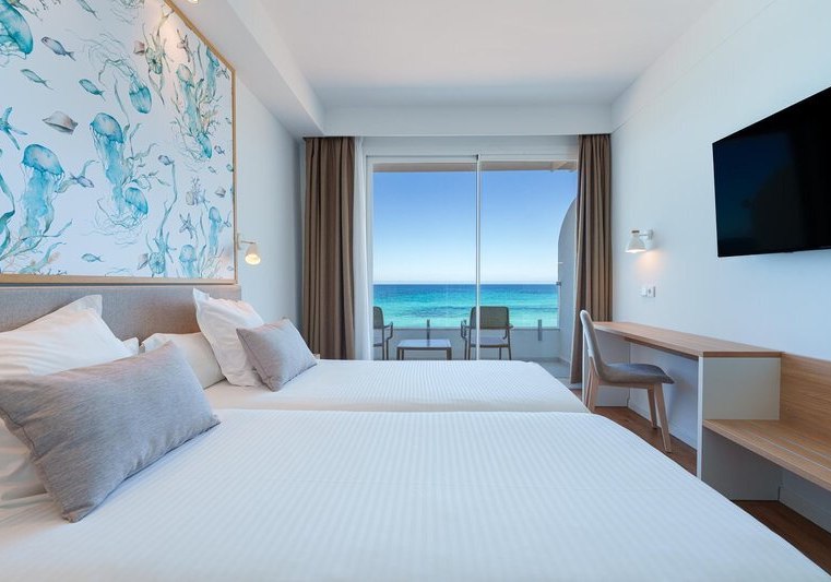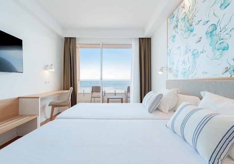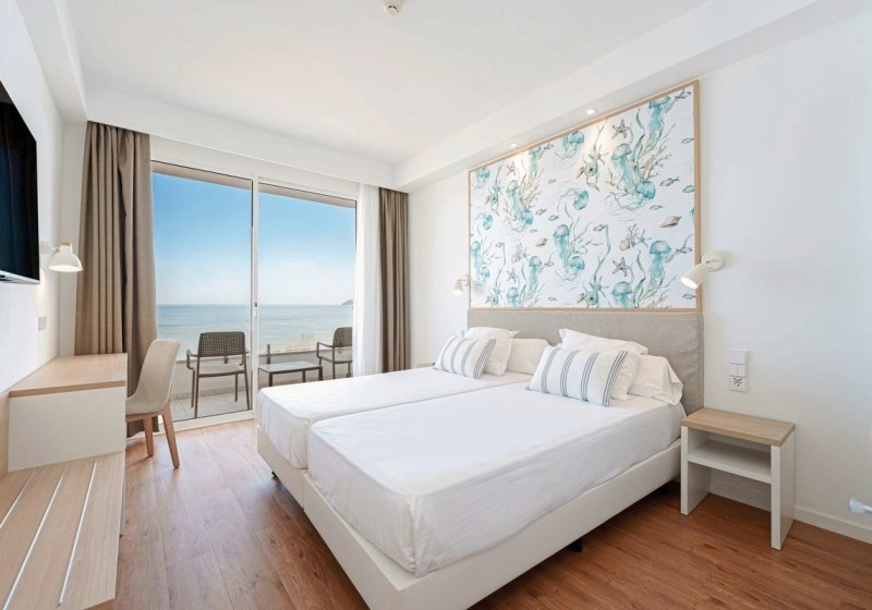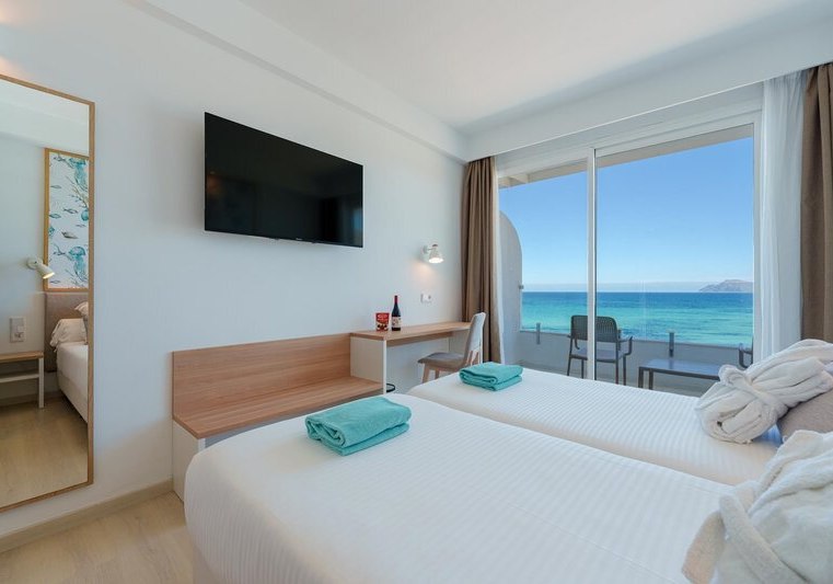 Ihr richtet Euch auf klare, funktionale Komfortzonen ein: Lobby mit Rezeption, Bar, Bistro und Restaurant mit Außenterrasse für luftige Mahlzeiten. Haustiere sind nicht erlaubt. Für Strandurlauber passt die Lage präzise, und wer flexibel speisen möchte, wählt zwischen Frühstück, Halb- oder Vollpension sowie All Inclusive. Familien freuen sich über den Hinweis „Kinder übernachten kostenlos“. Highlight: Direkte Lage an der Bucht Son Bauló mit Promenadenanschluss und Meer vor der Tür.