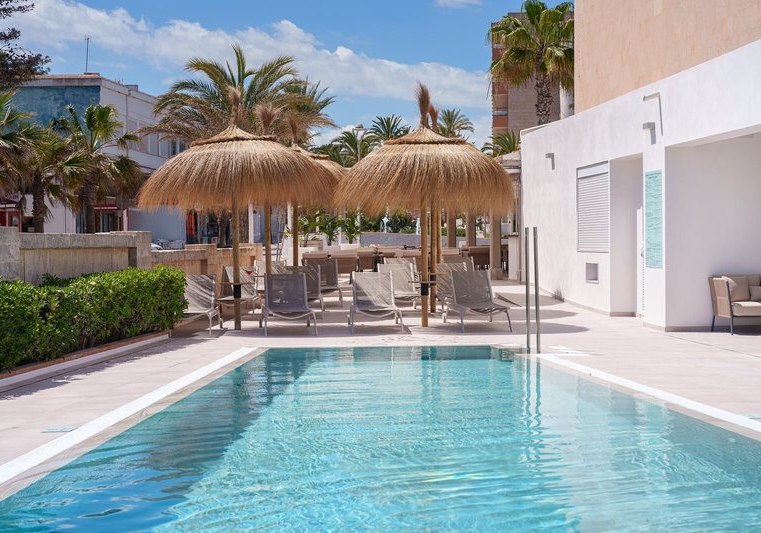 Im Caprice Concord Hotel & Spa wohnt Ihr direkt an der Bucht Son Bauló, angrenzend an das Landschaftsschutzgebiet Son Real. Die Stimmung ist lässig-maritimes Strandleben, mit kurzen Wegen vom Haus zur Promenade und zum Meer. Ein Außenpool mit Sonnenterrasse, Liegen und Schirmen bildet den ruhigen Mittelpunkt. Das offiziell mit 4 Sternen klassifizierte Haus wurde 1968 erbaut und 2006 renoviert, bietet WLAN im gesamten Hotel und eine 24‑Stunden-Rezeption.