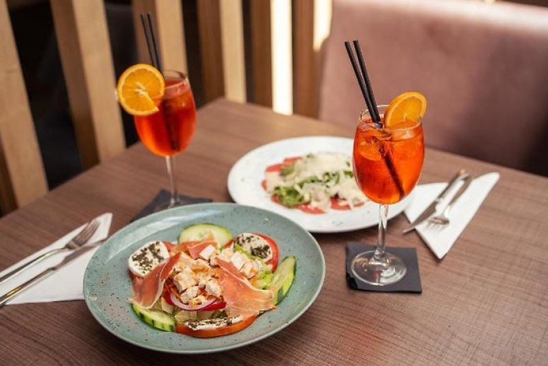 Das Hotel hat ein Restaurant, das eine Mischung aus Buffet und à la carte Speisen bietet. Die internationale Küche wird serviert, und es gibt eine Hotelbar für Erfrischungen. Das Angebot an Verpflegung im Hotel umfasst Frühstück, Mittag- und Abendessen, sowie Halbpension.Ausstattung