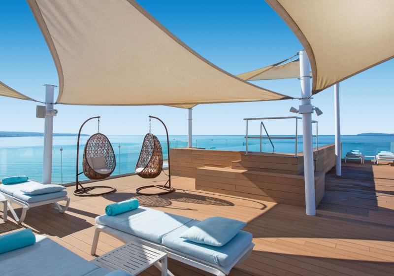 - Obere Ruhezone: Infinity-Pool auf der Dachterrasse für Star-Prestige-Gäste.