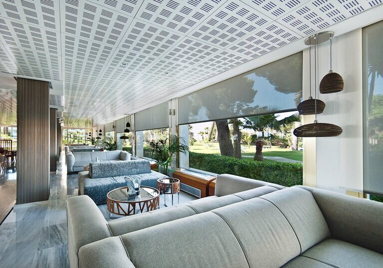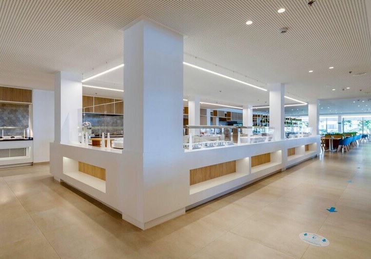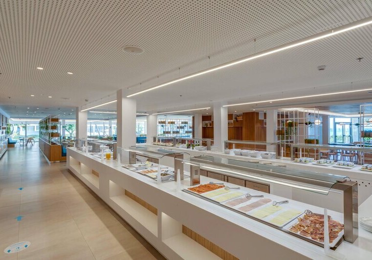 Die Infrastruktur ist breit aufgestellt: Lobby mit Rezeption, Lifte, kostenfreies WLAN im gesamten Hotel und ein gut gegliedertes Außengelände. Drei Außenpools plus Kinderbecken, Sonnenterrasse mit Liegen und Schirmen sowie eine Gartenanlage von 60.000 m² geben dem Haus Großzügigkeit und klare Wege. Ein Supermarkt vor Ort ergänzt kleine Besorgungen unmittelbar.